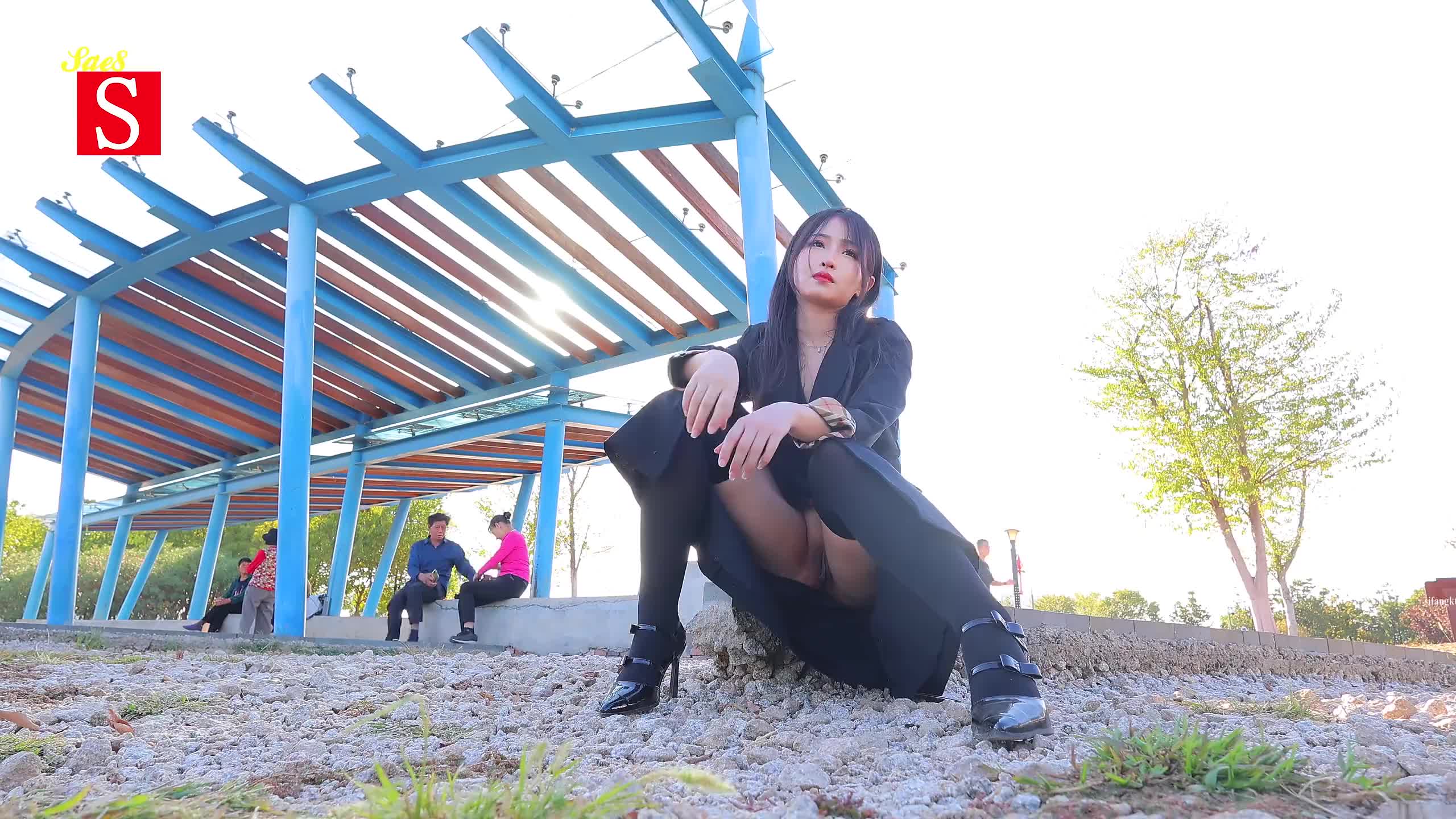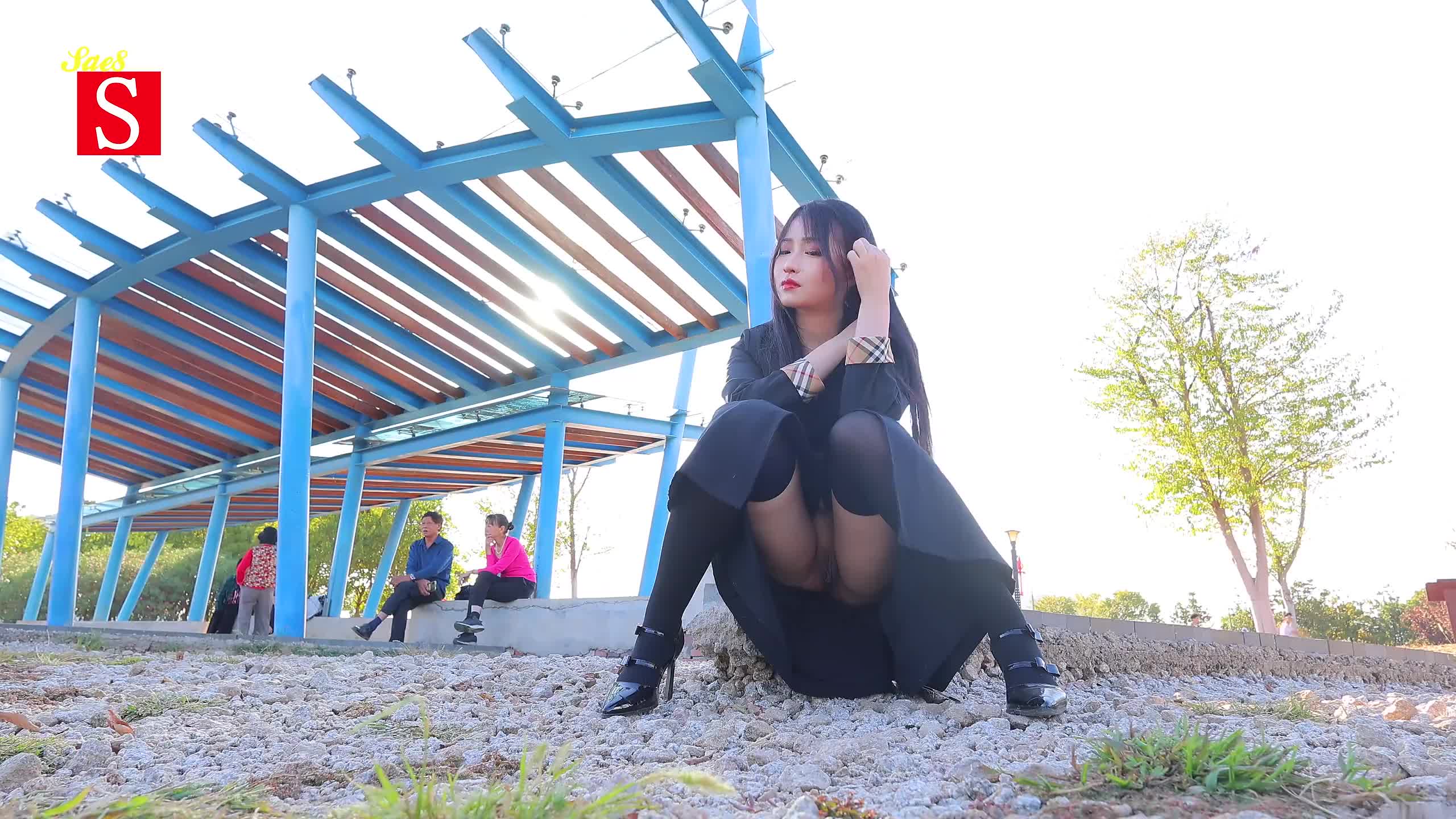 国模黄X户外公园身后坐着大爷大妈大白天露出。
