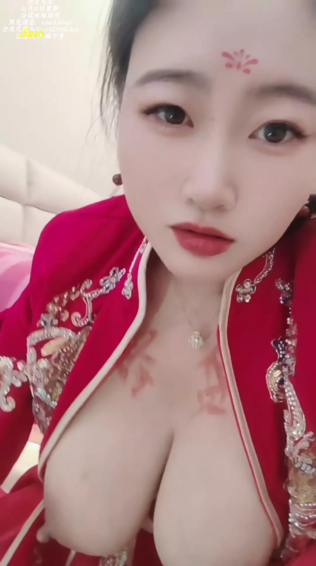 极品大奶少妇娍原创新娘穿着中式婚礼服紫薇